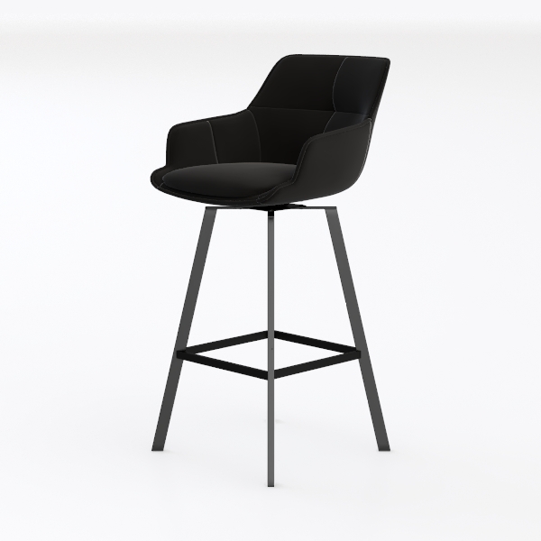 Inspired by modern minimalist aesthetics, this bar stool merges clean lines and balanced structure. Soft black fabric contrasts with matte metal legs, offering a sleek, elegant look with a smooth, tactile feel. Perfect for modern-luxe kitchens or bars, pair it with marble countertops and brass accents for sophistication. Its wide seat and sturdy frame ensure comfortable, long-lasting use, ideal for casual dining or late-night chats.
