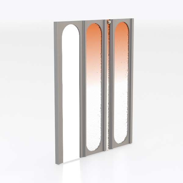 Inspired by warm sunset hues, this piece features textured frosted glass with a soft gradient from white to terracotta, blending smooth, translucent surfaces for a gentle visual appeal. Ideal for modern minimalist or Scandinavian spaces, it pairs beautifully with wooden furniture and potted greenery, adding warmth to any room. Its spacious interior storage is complemented by smooth sliding doors with sleek metal handles, balancing functionality and aesthetic charm.