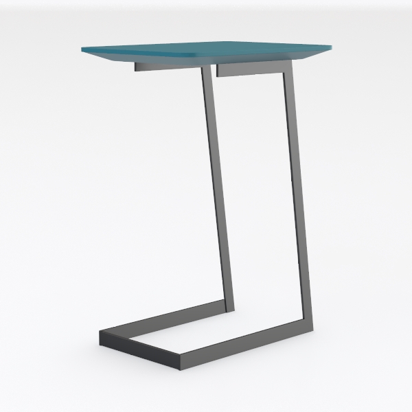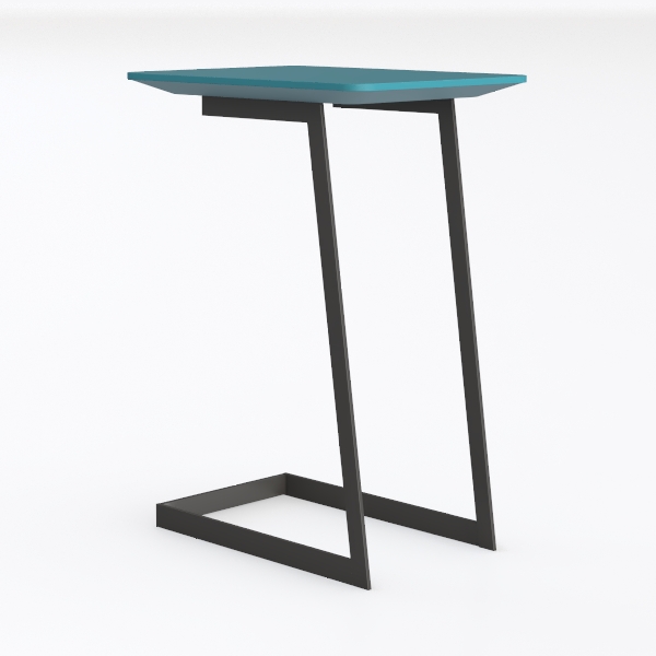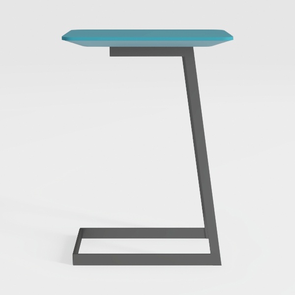 Inspired by minimalist geometric balance, this side table features a sleek, translucent blue top that catches light softly, while the matte gray metal frame offers sturdy, cool contrast. Its compact Z-frame saves floor space without compromising stability, ideal for a modern studio or Scandinavian living room, pairing seamlessly with light wood floors and neutral sofas.