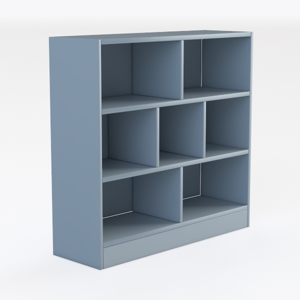 IOTXY Open Shelf Low Bookcase - Wooden 3-Tier Floor Standing Display Cabinet Organizer with Base, 7 Cubes Short Horizontal Bookshelf in Bright Blue