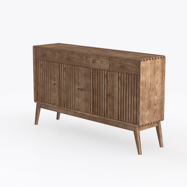 Inspired by natural wood grain and minimalist Scandinavian design, this piece features a warm, textured wood surface. Smooth yet slightly rough to the touch, its soft, earthy tones bring a cozy, natural vibe. Ideal for modern rustic or Scandinavian living rooms, pair with light walls, potted plants, and ceramic decor. Three drawers and two large cabinets offer ample storage, with slender, sturdy legs for both style and practicality.