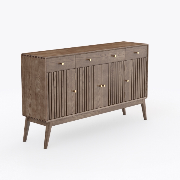 Storage Sideboard Cabinet, Kitchen Sideboard Buffet Cabinet with Fluted Panel and Gold Metal Handle, Modern Wood Accent Cabinets for Kitchen, Living Room, Dining Room, Entryway, Hallway (Walnut)