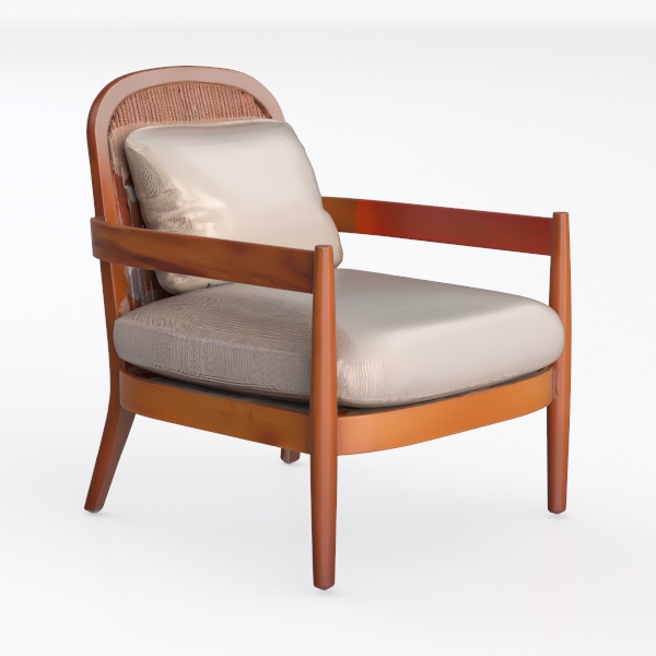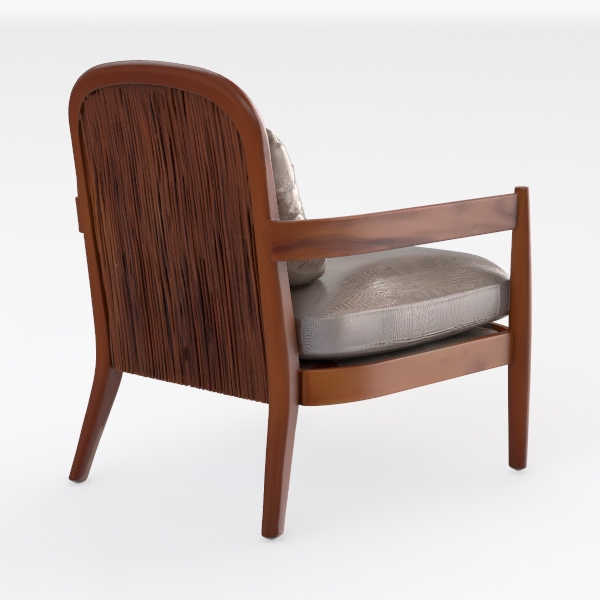 [Set of 2] 26.6" Mid-Century Modern Accent Chair with Walnut Finish Solid Wood Frame and Rattan Backrest, Beige Cushion with Striped Fabric, Comfy Armchairs for Living Room, Bedroom, Reading Nook