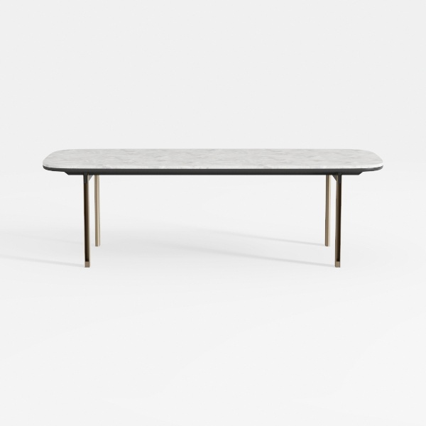 Inspired by the harmony of natural marble’s veined patterns and minimalist geometry, this table features a smooth, cool surface that mimics stone’s elegant texture, complemented by warm brass legs adding subtle metallic allure. Ideal for modern-luxury living rooms, it pairs with sleek sofas and geometric decor, enhancing space’s sophistication. The wide top offers ample room for daily use, while sturdy legs ensure stability, merging style and practicality seamlessly.