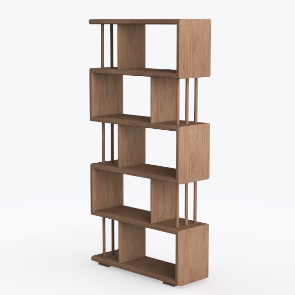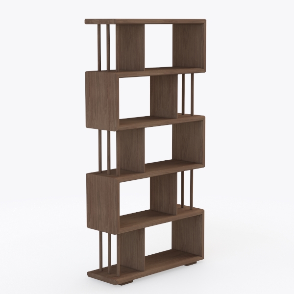 Inspired by architectural minimalism, this shelving unit features a warm walnut finish with smooth, tactile surfaces. Its geometric interspaced design balances light and shadow, creating a serene visual rhythm. Perfect for modern minimalist or Scandinavian living rooms, it pairs beautifully with sleek sofas and linen cushions. Flexible storage for books, plants, and decor, with an open structure keeping the space airy and functional.