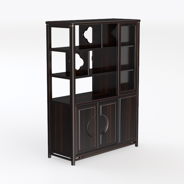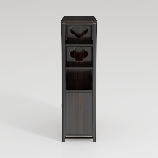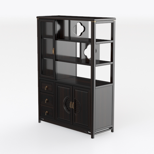 Inspired by traditional Chinese cloud motifs, this tall cabinet features sleek dark wood with smooth, warm texture and rich grain details. Clean lines and elegant cut-outs create subtle layering, enhancing visual depth. Ideal for modern Chinese-style living rooms, pair it with mahogany side tables, linen sofas, and calligraphy art. A closed lower cabinet offers hidden storage, while open shelves above display decor or books, blending style and functionality seamlessly.