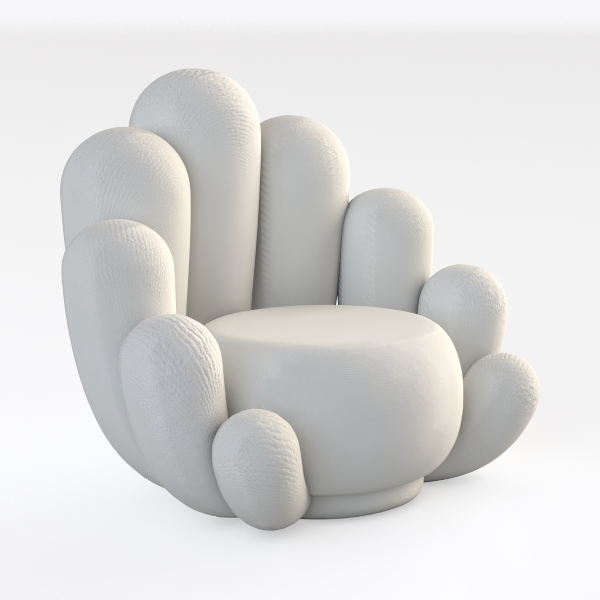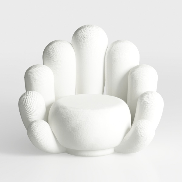 Inspired by the organic grace of natural forms, this armchair draws from the gentle, protective curve of a hand or the unfolding of a soft bloom. Its surface, rendered in a soft, matte-white finish, features a subtle, textured weave that catches light gently, evoking the smooth coolness of polished marble or the softness of cloud. Flowing, rounded edges create an enveloping, intimate space—warm yet expansive, making it feel like a gentle embrace.
