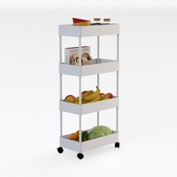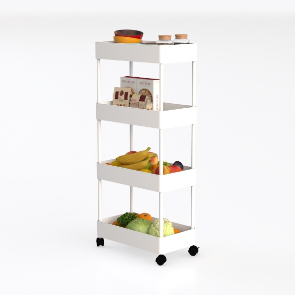 Inspired by practical home organization, this sleek, white storage rack blends modern simplicity with functionality. Its smooth, matte surface offers a clean, fresh visual appeal, while four wheels ensure easy mobility. Perfect for kitchens or small living rooms, it features multiple tiers to neatly store fruits, veggies, and daily essentials, maximizing space and keeping your home tidy.