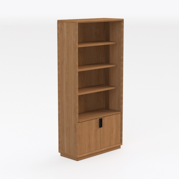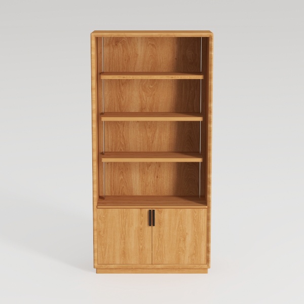 Inspired by natural wood grain and minimalist functionality, this shelving unit features a warm, smooth surface with soft, visible wood grains, offering tactile and visual comfort. Its light oak tone blends seamlessly into cozy studies or modern living rooms, complementing potted plants and sleek desk lamps. Spacious open shelves display books and decor, while the bottom cabinet with slim handles provides hidden storage, balancing style and practicality.
