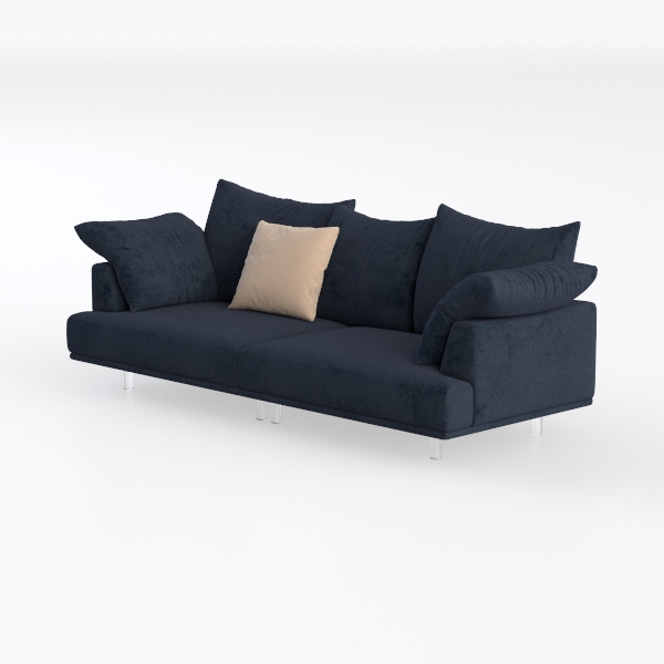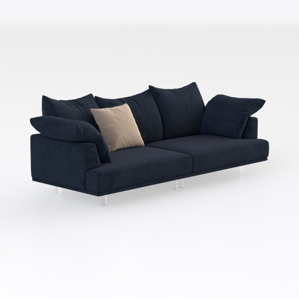 Drawing inspiration from the quiet allure of midnight skies, this sofa marries understated sophistication with everyday comfort. Its deep, velvety navy upholstery feels lush and inviting to the touch—each thread gliding smoothly, creating a soft, almost cloud-like texture that invites lingering. The neutral beige lumbar pillow at its center acts as a gentle counterpoint, adding warmth and a touch of contrast to the rich hue, while the sofa’s clean, curved arms frame the space with approachable softness.