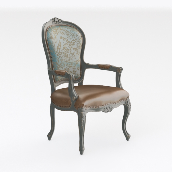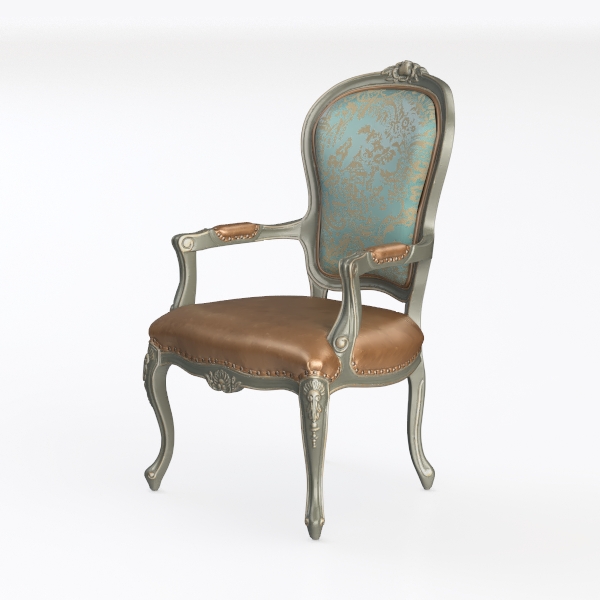 Inspired by 18th-century European craftsmanship, this armchair features intricate frame carvings, blending vintage charm with modern style. Turquoise and gold floral upholstery on the back adds soft texture, while smooth brown leather seat offers warm, tactile contrast. Ideal for classic or neoclassical living rooms, pairing beautifully with marble tables and crystal chandeliers. Ample seat depth and curved armrests ensure exceptional comfort, with sturdy legs enhancing durability.