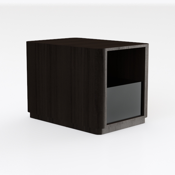Inspired by organic wood grain and geometric simplicity, this piece features a rich, dark finish with smooth, polished edges. Its warm, tactile surface and contrasting open storage space create a balanced, grounding look. Perfect for modern minimal or Scandinavian-style living rooms, it pairs beautifully with sleek metal accents and soft textiles. A practical choice, it offers ample room for books and decor, blending functionality with understated elegance.
