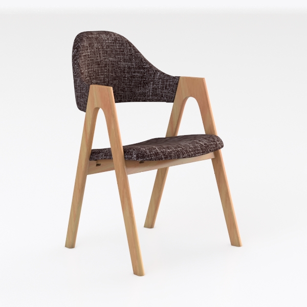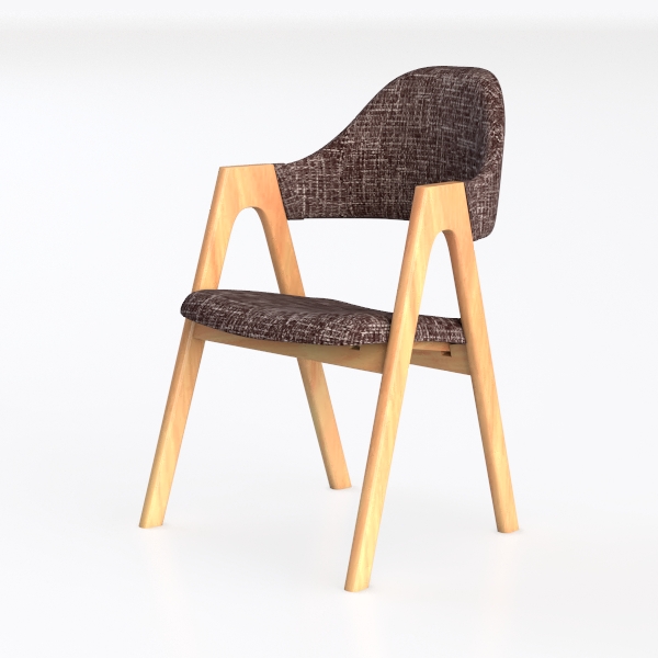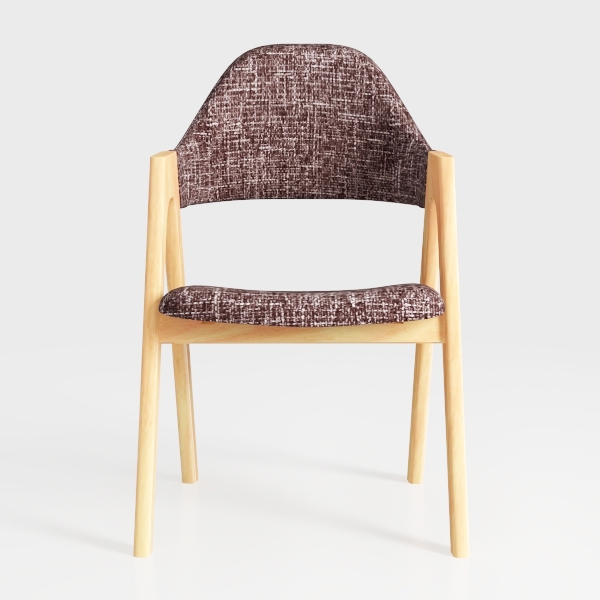 Inspired by organic curves and minimalist Scandinavian design, this chair features a soft, brown textured fabric seat and backrest, paired with a light oak frame. Its sleek, curved lines and warm, natural vibe blend seamlessly into modern or Nordic-style dining rooms or living spaces, complementing wooden tables and soft lighting. The ergonomic curved backrest and sturdy oak legs ensure exceptional comfort and support, ideal for long meals or casual seating.
