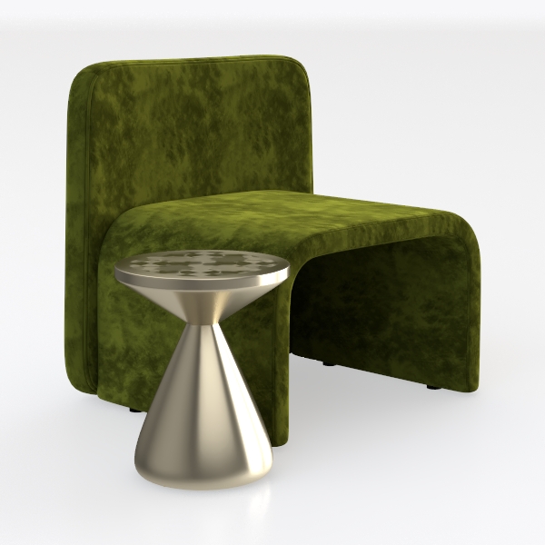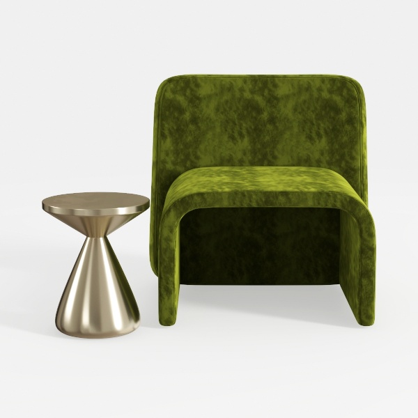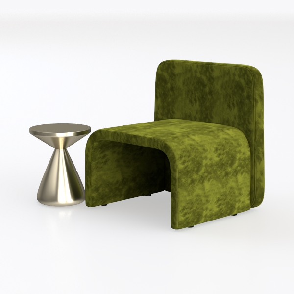 Inspired by nature’s vibrant greens and modern minimalism, this armchair merges softness with sleekness. The plush emerald upholstery feels inviting to the touch, while the smooth metallic side table adds a reflective, polished contrast. Ideal for a modern living room, it pairs beautifully with marble or wood accents, creating a cozy yet contemporary vibe—wide, contoured seats ensure all-day comfort.