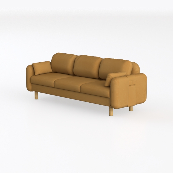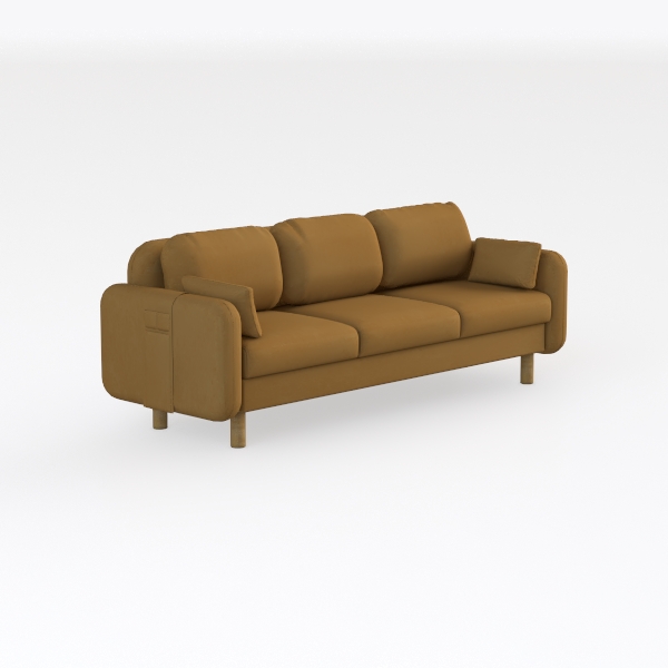 Crafted with a blend of natural warmth and minimalist charm, this sofa takes inspiration from the soft, golden glow of morning light filtering through autumn foliage, paired with the clean, uncluttered lines of Scandinavian design. Its mustard-yellow upholstery, with a subtle, velvety texture, feels surprisingly warm to the touch—like resting against a soft, sun-drenched blanket—while the muted hue adds a cozy, inviting energy to any space. The three generously padded seats, seamlessly connected to the low, curved backrest, create a cohesive, balanced silhouette that feels both spacious and intimate, while the slim, light wood legs add a grounded, organic contrast, keeping the piece visually light and unobtrusive.