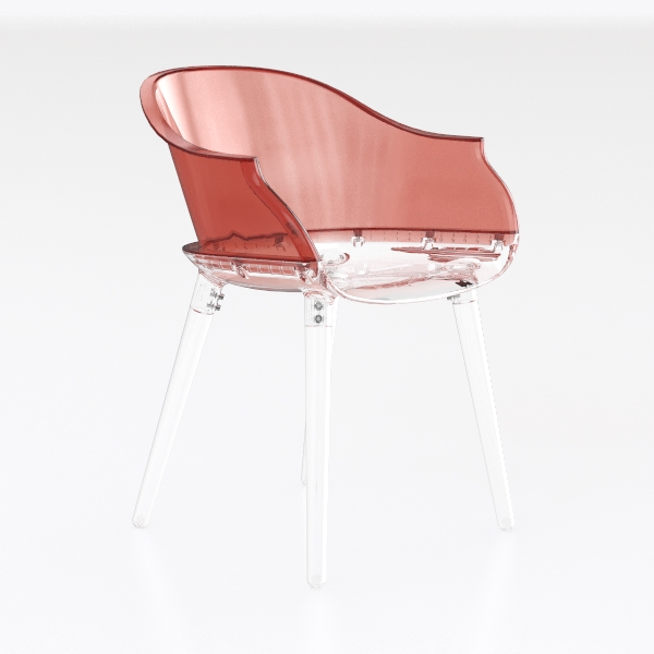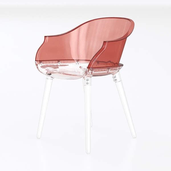 Inspired by minimalist art, this chair blends sleek transparent frame with soft blush backrest, offering smooth, lightweight comfort. Its airy visual and clean lines make it ideal for modern living rooms or dining areas, pairing beautifully with marble tables and metallic accents. Slender legs ensure stability, while curved back provides gentle support for casual seating.