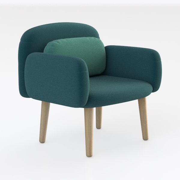 This armchair draws inspiration from the serene balance of nature, merging the soft teal of coastal lagoons with the warm, earthy grain of polished oak. Its design embodies modern minimalism with organic warmth, crafted to feel both intentional and comforting. The upholstery, a rich teal fabric with a subtle, velvety texture, yields gently to the body, while the curved backrest and detachable lumbar cushion cradle the spine—perfect for long hours of relaxation or casual conversation. The light oak legs, smooth and slightly tapered, add a delicate contrast to the plush upholstery, their natural wood grain enhancing the chair’s organic charm without overshadowing its sleek silhouette.
