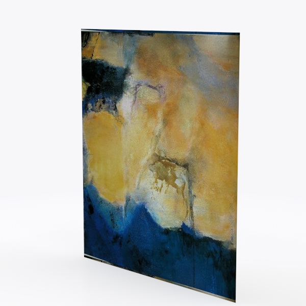 Draws inspiration from flowing natural landscapes, blending warm golden hues and deep blue undertones to evoke calm and organic harmony. Its smooth, matte surface with subtle texture transitions creates tactile and visual depth, balancing softness and structure. Perfect for a modern minimalist living room, pairing beautifully with neutral rugs and wooden tables to enhance serenity. Integrated armrests and generous seating offer comfort and practicality, ideal for daily relaxation and entertaining.