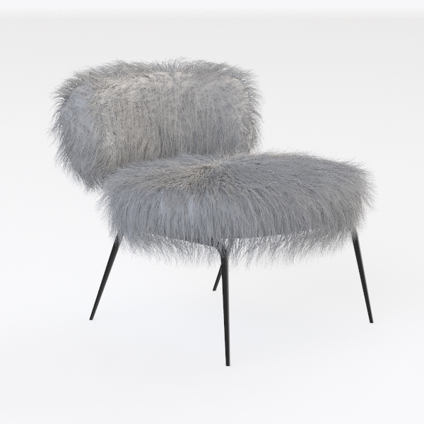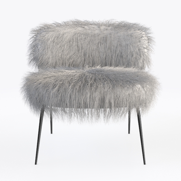 Inspired by soft natural textures like down, this chair blends organic warmth with modern minimalism. Its plush, fluffy gray upholstery offers gentle, light tactile softness, while sleek black metal legs create a striking contrast, balancing coziness and contemporary elegance. Ideal for Scandinavian or minimalist living rooms/bedrooms, pairing with wooden tables and warm rugs. The curved backrest and deep seat provide excellent lumbar support, perfect for long relaxation hours.
