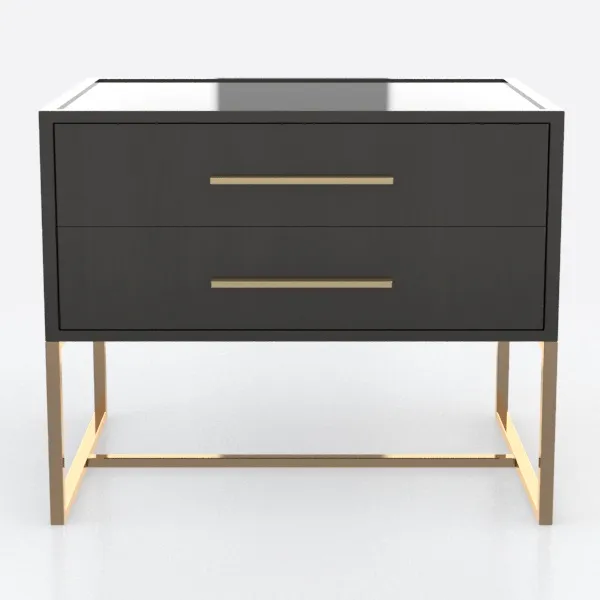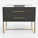 Inspired by mid-century modern minimalism, this piece blends matte black drawer fronts with a smooth, cool touch, paired with sleek gold metal legs that add subtle luxury. Ideal for Scandinavian or contemporary bedrooms, it complements soft linen bedding and vintage brass lamps. Two deep drawers offer ample storage for bedtime essentials, balancing style and practicality.