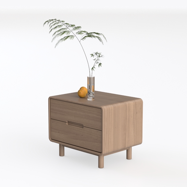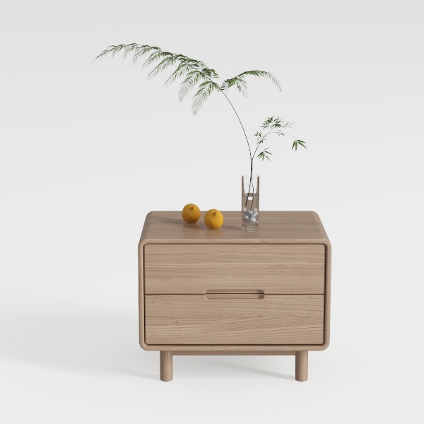 Rooted in natural simplicity, this piece draws inspiration from organic wood grain and minimalist Scandinavian design. Its smooth, light oak surface offers a warm, tactile feel, with soft edges that blend seamlessly into calm spaces. Perfect for a serene bedroom, it elevates modern minimalism, pairing beautifully with potted plants and fresh fruits for a cozy, lived-in vibe. Two spacious drawers provide practical storage, while slender, sturdy legs add stability and an airy, uncluttered look.