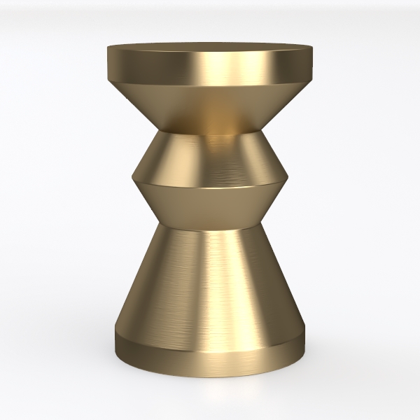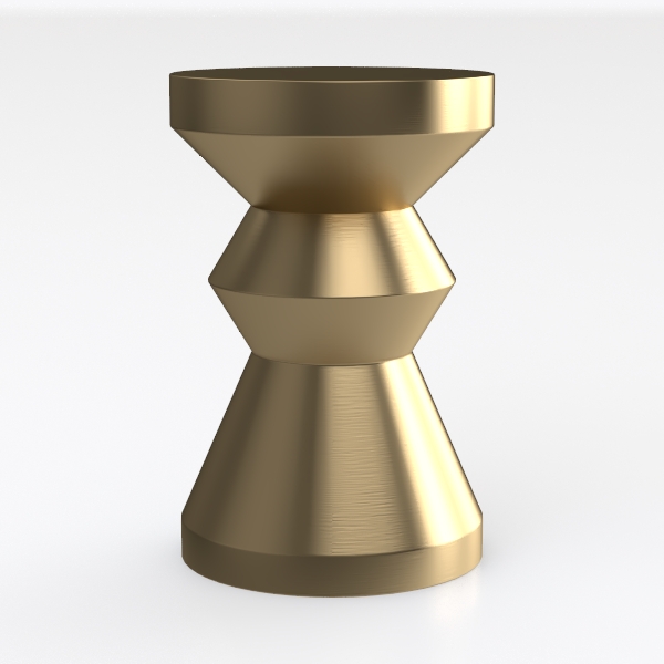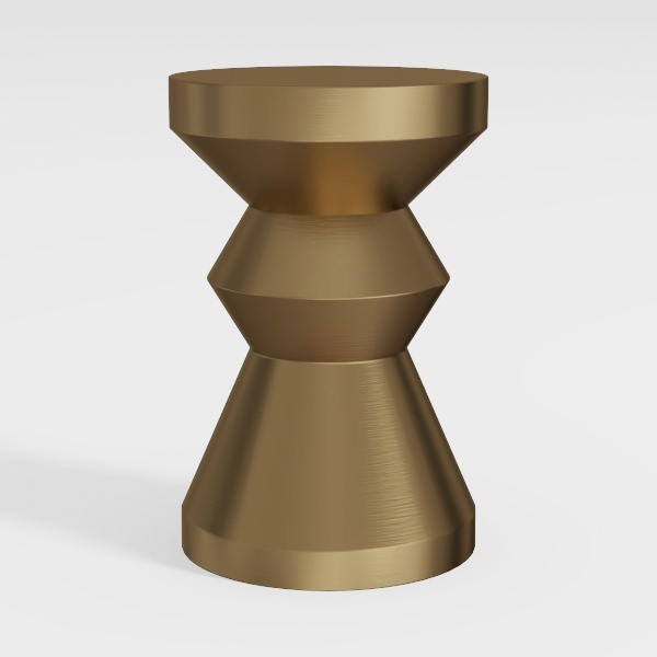 Inspired by geometric architecture and sculptural forms, this brushed gold side table features a sleek, layered silhouette. Its warm metallic glow and smooth texture add depth, perfect for a modern-luxe living room with marble coffee tables and sleek floor lamps. Sturdy yet elegant, it holds drinks or decor, blending style and functionality seamlessly.