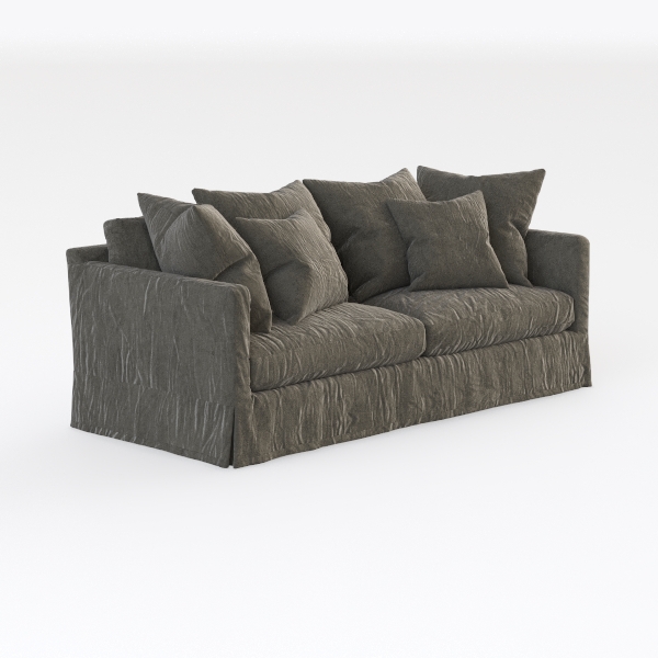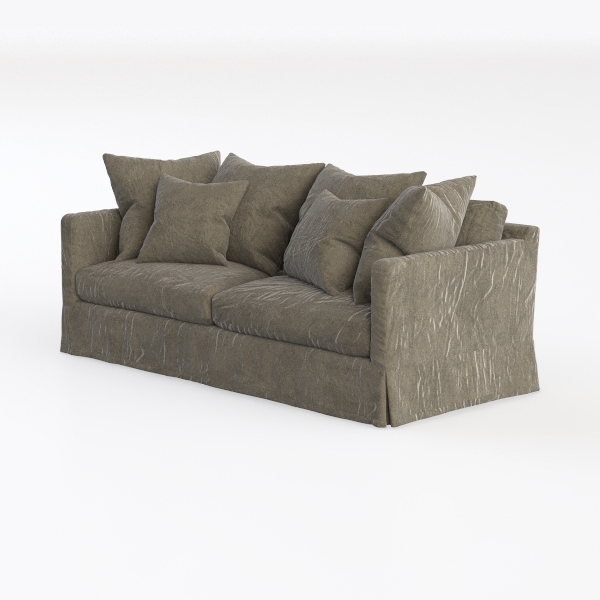 Crafted with a blend of organic inspiration and modern practicality, this sofa embodies a timeless yet fresh aesthetic. Its muted sage-green hue draws from the quiet charm of moss-covered stone, while the relaxed drapery of the upholstery adds artisanal warmth, evoking a sense of handcrafted care. The fabric, with its subtle crinkled texture, feels surprisingly soft to the touch—warm and inviting, like wrapping oneself in a well-loved blanket. The neutral tone diffuses light gently, creating a calm, grounding presence in the room, whether in a minimalist or bohemian setting.