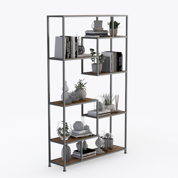 Triple Column 5-Tier Bookshelf,Bookcase W/14 Display Shelves, Rustic Industrial Bookshelf With Frame, Modern Wide Large Book Shelf Book Case, Ideal for Living Room, Home and Offcie, Rustic Brown