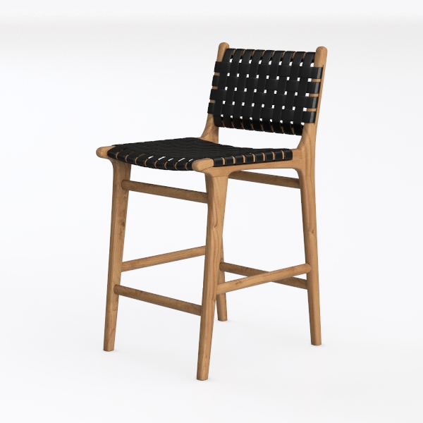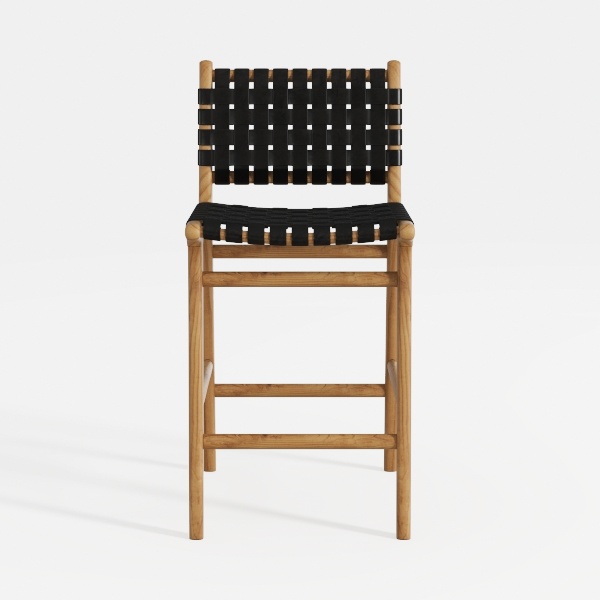 Inspired by natural simplicity, this bar stool blends warm, smooth oak frame with soft, resilient black webbing, creating textural contrast. Ideal for modern kitchens or coastal bars, it pairs beautifully with marble countertops and rattan pendant lights. Sturdy legs ensure stability, while the breathable webbing offers comfortable support for casual dining or late-night chats.