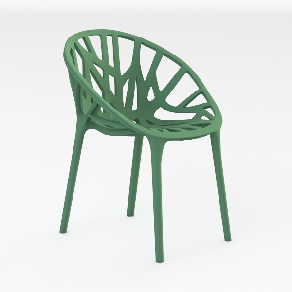 Inspired by natural organic forms, mimicking the delicate structure of tree branches, this chair features a sleek, matte mint green finish. Intricate cut-out patterns create a light, airy visual effect, with a smooth, cool touch. Ideal for modern, minimalist dining or living spaces, pairing beautifully with wooden tables or metallic accents. Its ergonomic curved back and lightweight frame ensure comfortable seating, perfect for daily use.