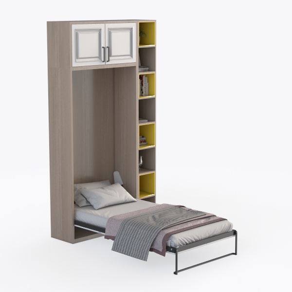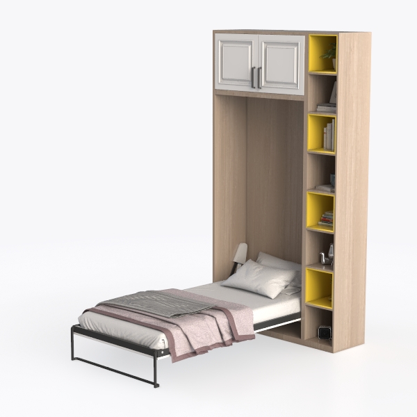 Designed to optimize small living spaces, this furniture piece merges practicality with modern style. Warm wood textures and matte metal accents offer a smooth, tactile feel, while the neutral color palette keeps the look clean and inviting. Ideal for compact apartments, it pairs well with minimalist decor—soft textiles and geometric rugs enhance its understated charm. A hidden bed mechanism saves floor space, complemented by integrated shelves and cabinets for organized storage.