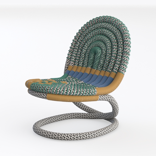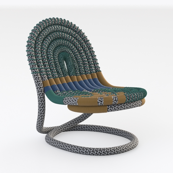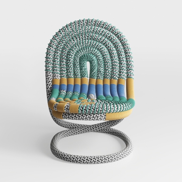 Inspired by organic vine patterns, this piece blends vibrant blue, yellow, and teal with geometric black-and-white weaves. Its soft braided texture offers tactile comfort, while curved back and base create a dynamic, flowing silhouette. Ideal for modern bohemian or coastal living rooms—pair with wooden tables and plants. A generously sized seat with great lumbar support ensures long relaxation during reading or gatherings.
