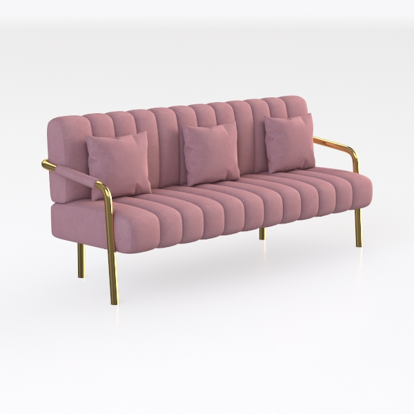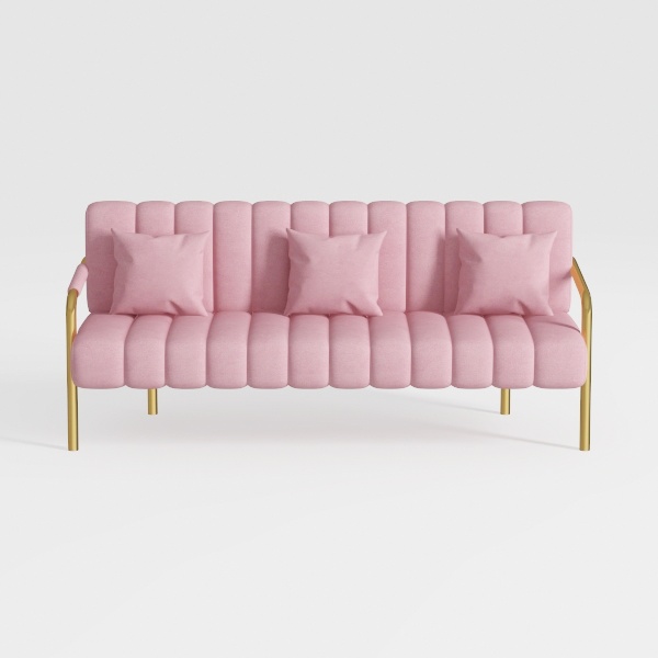Blending soft warmth with understated elegance, this sofa takes cues from the harmony of cozy daily moments and refined design. Its plush, blush-pink upholstery feels like a gentle embrace—silky yet substantial, with a texture that invites touch, as if crafted from a premium velvet blend that catches light softly. Contrasting the softness, the slim, gold-toned metal legs and armrests add a touch of luxurious minimalism, their sleek lines balancing the sofa’s rounded, billowy form. The vertical, wave-like creases in the upholstery create a dynamic, three-dimensional effect, making the piece feel both substantial and airy.