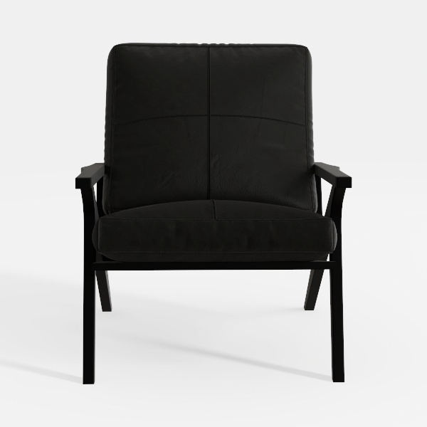 The chair embodies a minimalist aesthetic rooted in geometric precision, drawing inspiration from mid-century modern design principles that prioritize functionality and clean lines. Its black leather upholstery, with subtle tufting details, offers a tactile blend of softness and structure—cool to the touch yet yielding enough to cradle the body, while the matte black metal frame, with its angular legs and slim arms, adds a sleek, industrial edge. Visually, the monochromatic palette and uncluttered silhouette create a sense of calm, making it a versatile piece that anchors modern, Scandinavian, or contemporary spaces.