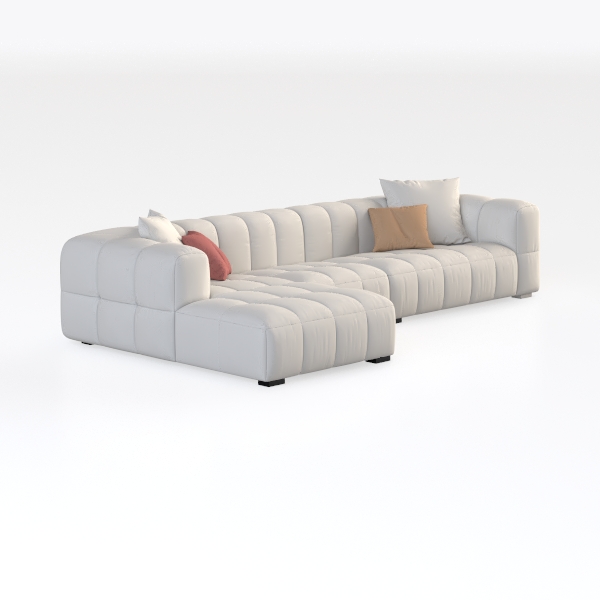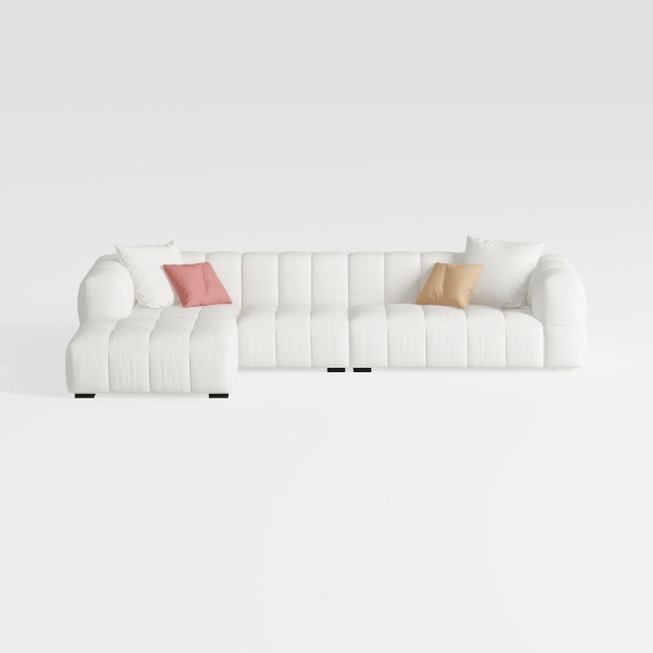 Crafted with a design philosophy rooted in balancing architectural precision and organic softness, this piece draws inspiration from the interplay of geometric minimalism and tactile warmth. Its exterior features a plush, cloud-like texture, with subtle vertical channeling that adds depth without overwhelming the eye—made from a buttery-soft, neutral-toned fabric that feels indulgent to the touch, inviting relaxation. The clean, unbroken lines of its L-shape create a sense of spaciousness, while the low-profile arms and rounded corners soften the overall silhouette, making it both modern and approachable.