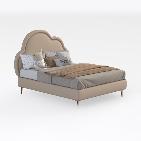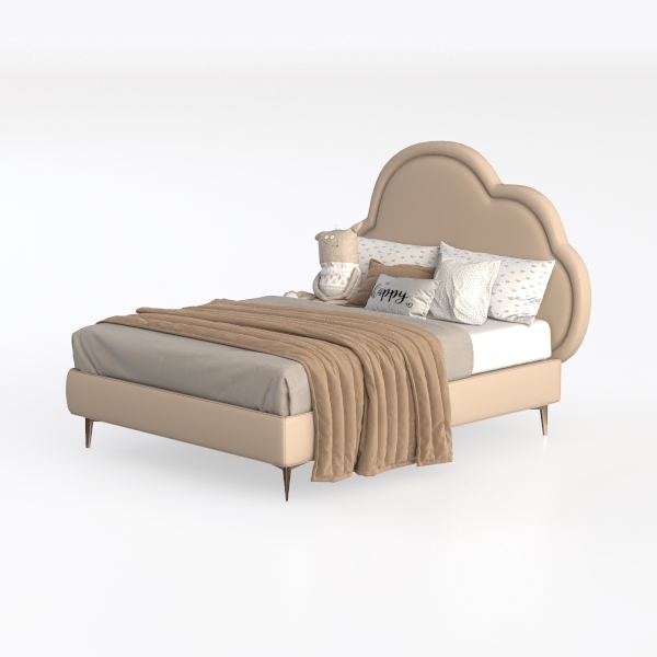 Inspired by soft, fluffy clouds, the headboard curves gently to evoke warmth and whimsy. Its beige upholstery feels smooth and plush, contrasting with crisp, light linens for a cozy, tactile look. Ideal for a child’s bedroom or minimalist space, pair with pastel accents and wooden furniture. Ample under-bed space and a sturdy base offer comfort and durability, blending design and functionality seamlessly.