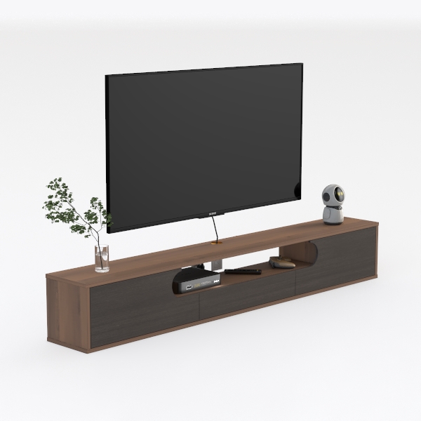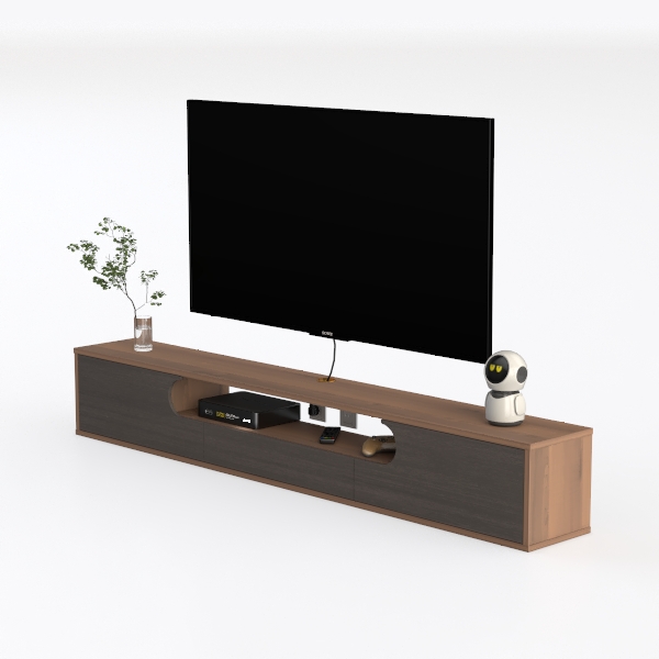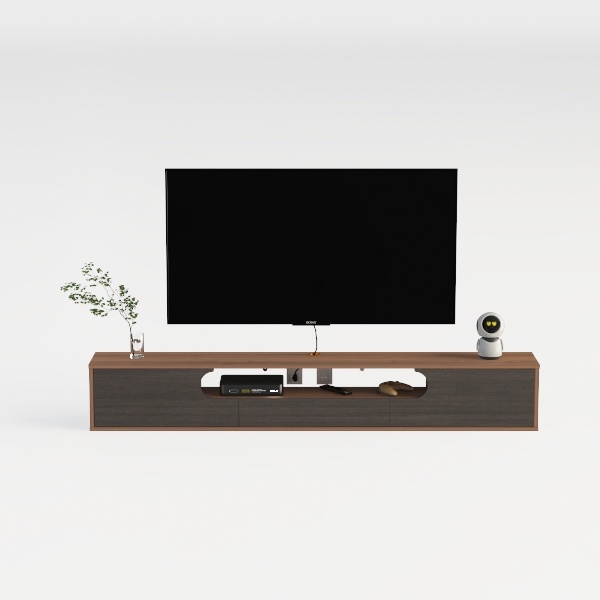 Inspired by natural wood grain and clean lines, this media console blends warm wood tones with smooth dark panels for a balanced, tactile feel. Perfect for modern living rooms, it complements marble coffee tables and metallic accents, while spacious drawers and open shelves offer ample storage, keeping devices and decor organized.