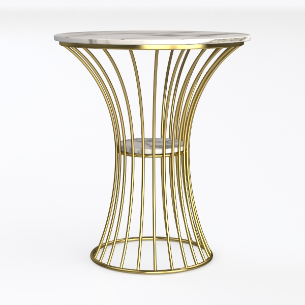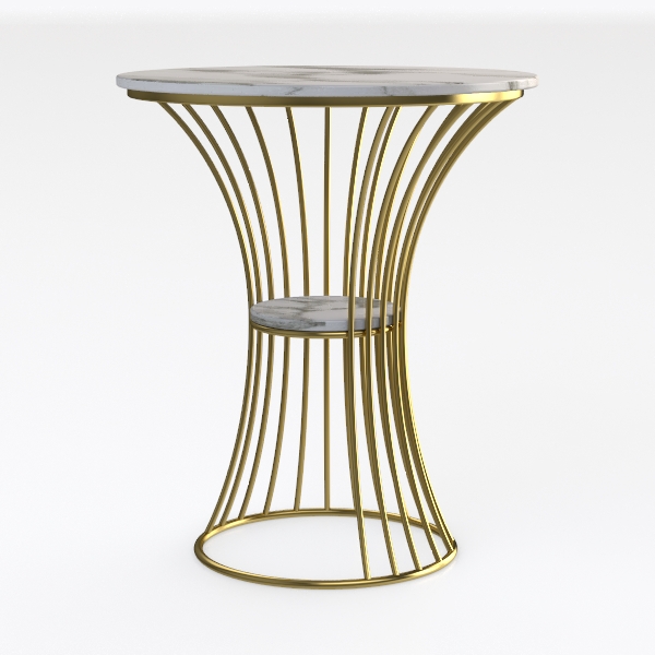 Inspired by mid-century modern elegance, this side table merges soft curves with timeless allure. Its white marble top, smooth and cool with striking gray veining, contrasts beautifully with the warm, polished gold metal frame—light yet sturdy, casting gentle shadows. Ideal for a modern minimalist living room or a chic reading nook, it pairs flawlessly with velvet sofas and geometric art. The lower marble shelf adds subtle storage for decor or small items, blending style with practicality seamlessly.