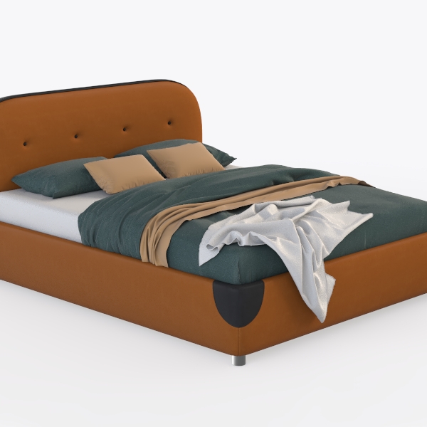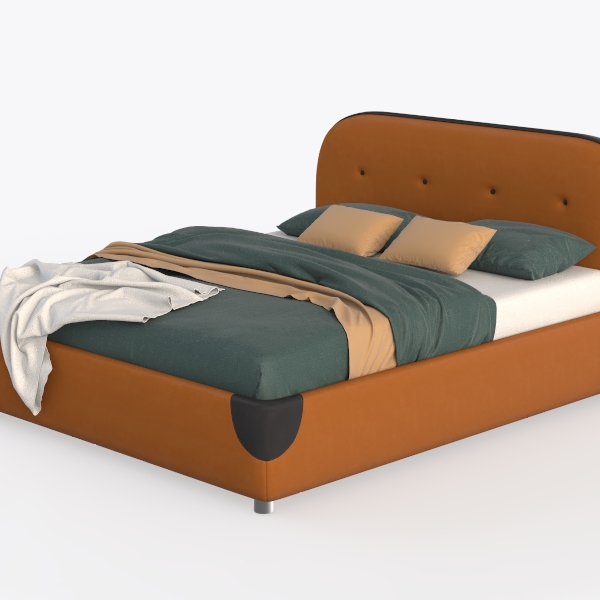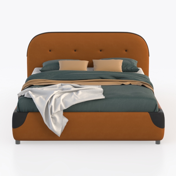 Inspired by mid-century warmth, this bed blends soft terracotta upholstery with a sleek, curved silhouette. The velvety texture of the headboard invites gentle touches, while the cool teal bedspread and textured beige pillows create a balanced visual rhythm. Ideal for modern or minimalist bedrooms, it pairs beautifully with marble nightstands and matte black lighting. Ample bed depth and supportive curved headboard ensure both style and comfort for restful nights.
