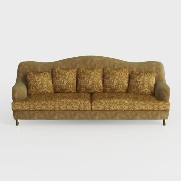 Elegant and inviting, this sofa blends classic charm with modern comfort. Its design takes inspiration from 18th-century European upholstery, reimagined to suit today’s spaces. The warm, sunlit tones of gold and chestnut, paired with an intricate damask pattern, create a rich visual texture that catches the light softly. The velvety fabric feels sumptuously soft to the touch, while the gently curved silhouette—with sloping arms and a slightly raised back—adds a sense of grace and approachability.