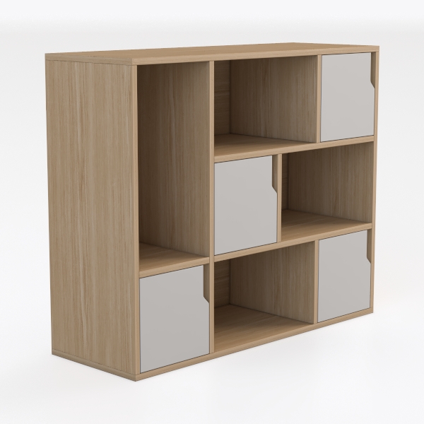 Inspired by minimalist Scandinavian design, this open shelving unit blends warm textured wood grain with crisp white panels. Its geometric structure and clean lines create a bright, airy feel, while varied compartments offer flexible storage for books, decor, and daily essentials. Perfect for modern living rooms or home offices, it balances functionality and aesthetic appeal effortlessly, catching light to enhance space.
