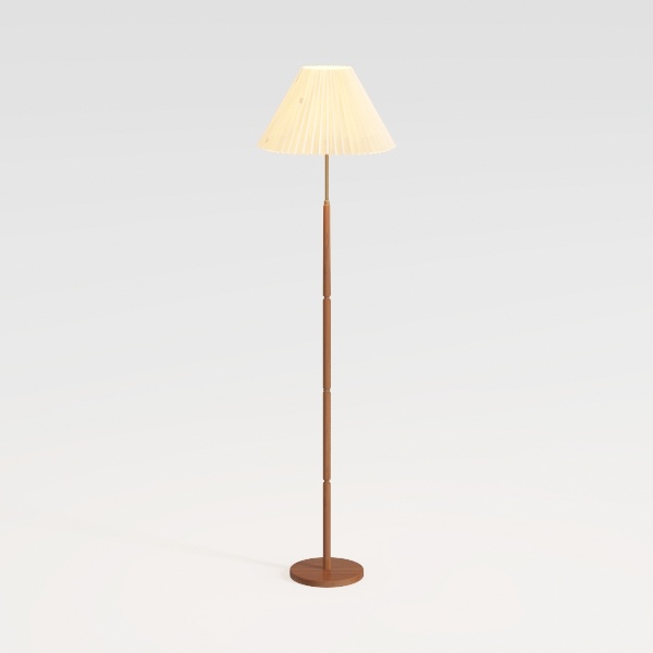 Globe Electric 61000053 62" Floor Lamp, Wood-Toned Finish, Pleated Fabric Shade, Pull Chain Switch, Reading Light, E26 Base, Modern Classic Lighting for Living Rooms and Bedrooms