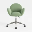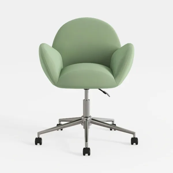 This modern chair features light green upholstery and a silver base with 31557 polygons, suitable for contemporary living rooms or home offices.