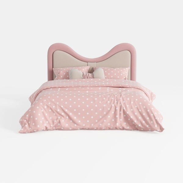 Inspired by delicate butterfly wings, the headboard curves gently, blending soft pink with white polka dots for a dreamy, whimsical vibe. The smooth, breathable fabric feels gentle against skin, while the curved headboard adds a warm, inviting touch. Perfect for a cozy kids' room or soft, romantic bedroom, it pairs beautifully with wooden nightstands and warm fairy lights. The wide, plush design ensures ultimate comfort, ideal for unwinding after a long day.