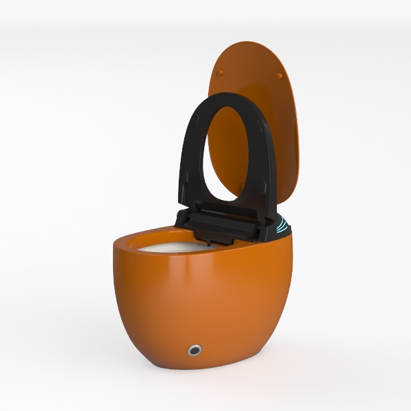 Simple Project Modern One-Piece Egg-Shaped Toilet with Powerful Siphonic Flush System, Single Flush 1.6 GPF, Quiet and Compact Design for Small Bathrooms, 12-Inch Rough-In Egg Toilet (Orange)