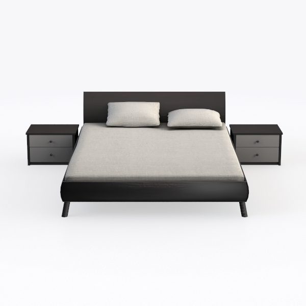 Inspired by Scandinavian minimalism, this bed blends clean lines with warm natural elements. Its smooth matte black frame contrasts with soft linen-like bedding and textured gray cushions, creating a calm, inviting atmosphere. Perfect for modern minimalist or Scandinavian bedrooms, pair it with light wood nightstands and warm-toned wall art. The low-profile design with sturdy legs enhances space, while soft, breathable fabric ensures a cozy sleep experience.