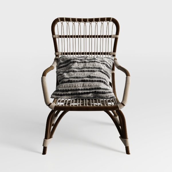Inspired by natural craftsmanship, this chair blends warm, textured wicker with soft braided ropes, exuding organic charm. Its curved back and armrests cradle the body, while a striped linen cushion adds gentle softness. Perfect for a cozy living room or sunlit porch, complementing bohemian or minimalist decor, with an ergonomic design ensuring relaxed, long-lasting comfort.