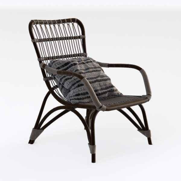AubryGaspard Poltrona in rattan tinta grigio con cuscino