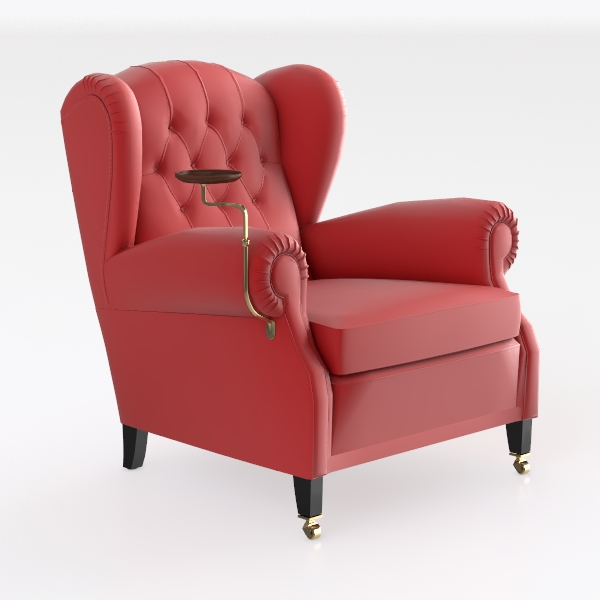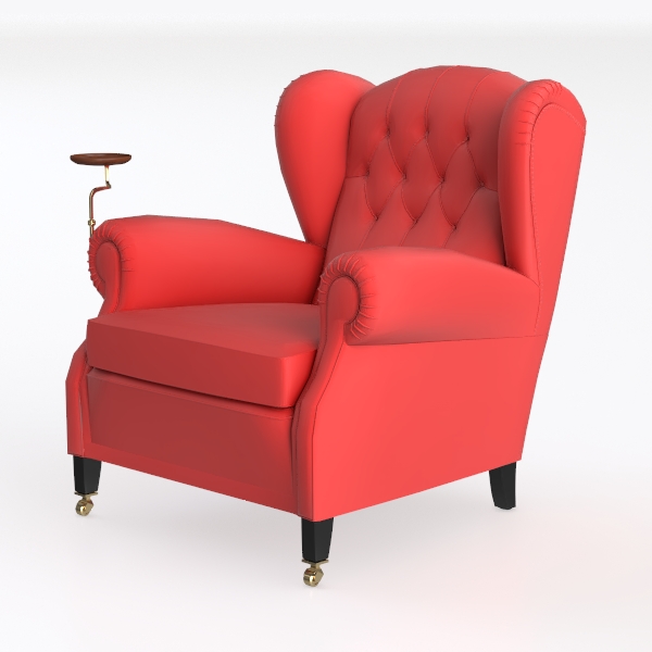 Inspired by classic wingback chairs, blending timeless elegance with modern comfort. Vibrant red leather upholstery, with intricate tufted details, offers soft, luxurious touch and warm, eye-catching presence. Ideal for sophisticated living rooms, pairing beautifully with marble coffee tables and brass accents for a vintage-contemporary blend. Spacious seat depth ensures exceptional comfort; integrated side table and smooth-rolling casters add practicality and mobility.