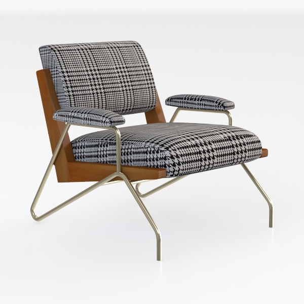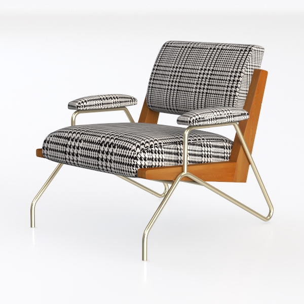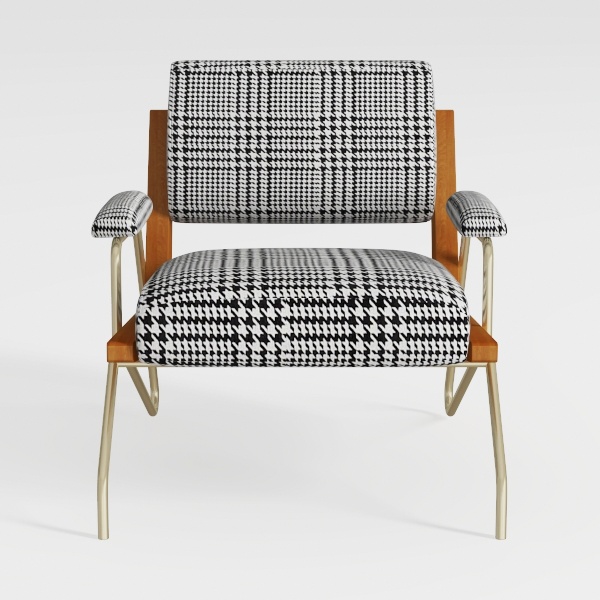 Crafted with timeless allure, this armchair finds inspiration in the enduring charm of houndstooth patterns, merging vintage sophistication with modern simplicity. The crisp black-and-white千鸟格 design weaves a textural tapestry, its repeating geometric motifs adding visual rhythm to any setting. Upholstered in a soft, breathable fabric, the seat and backrest invite relaxation, while the warm, smooth wood frame infuses the piece with organic warmth. The slender, matte metal legs and armrests, with their subtle sheen, contrast gently with the natural wood, balancing rustic coziness with sleek modernity.